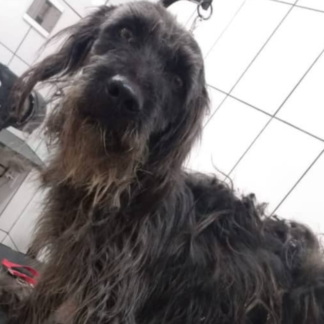 "Meu Simba foi resgatado em estado crítico. Hoje, após meses de cuidados, ele é um cão feliz e saudável. Obrigada,!"